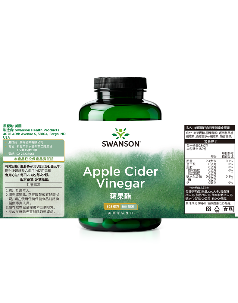 蘋果醋 625毫克 180顆裝 硬膠囊