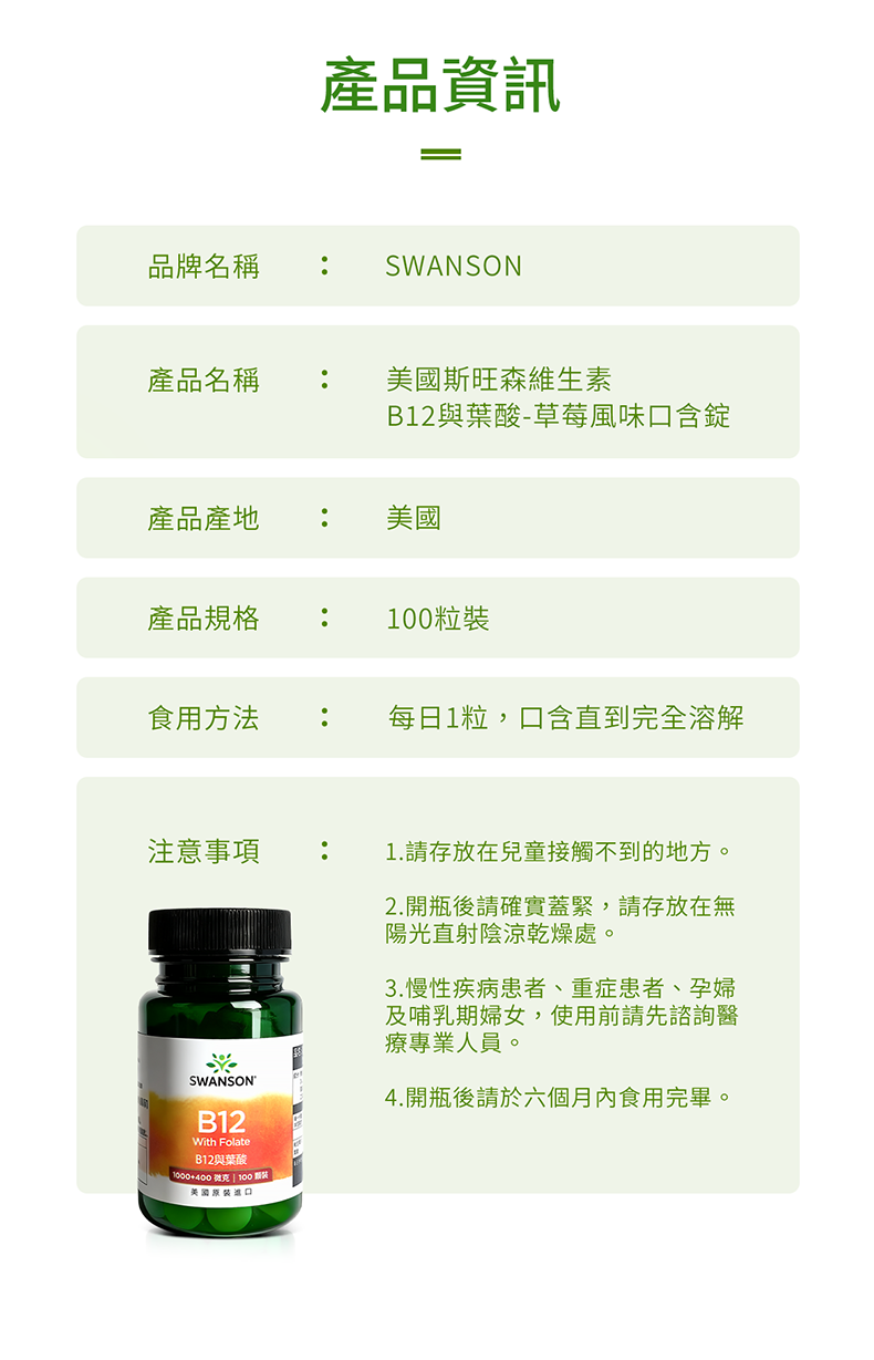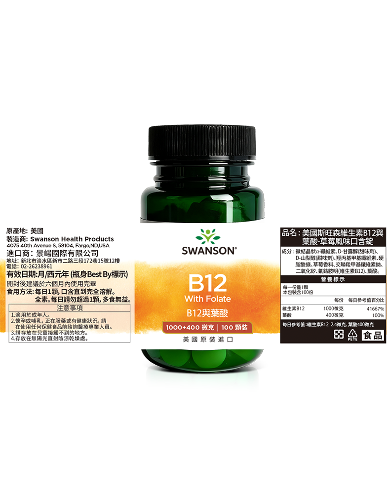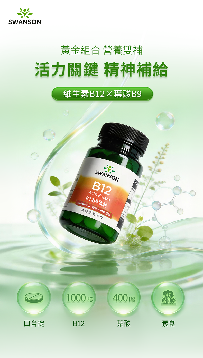 維生素B12與葉酸 1000微克+400微克 100錠 口含錠