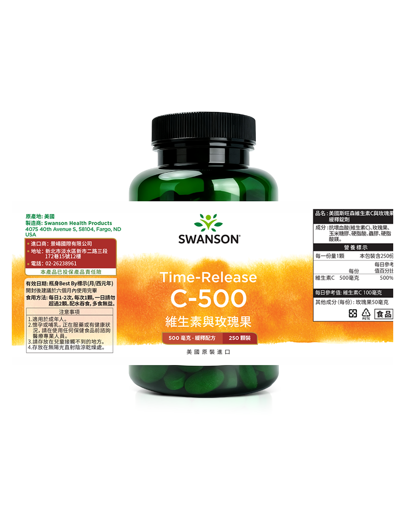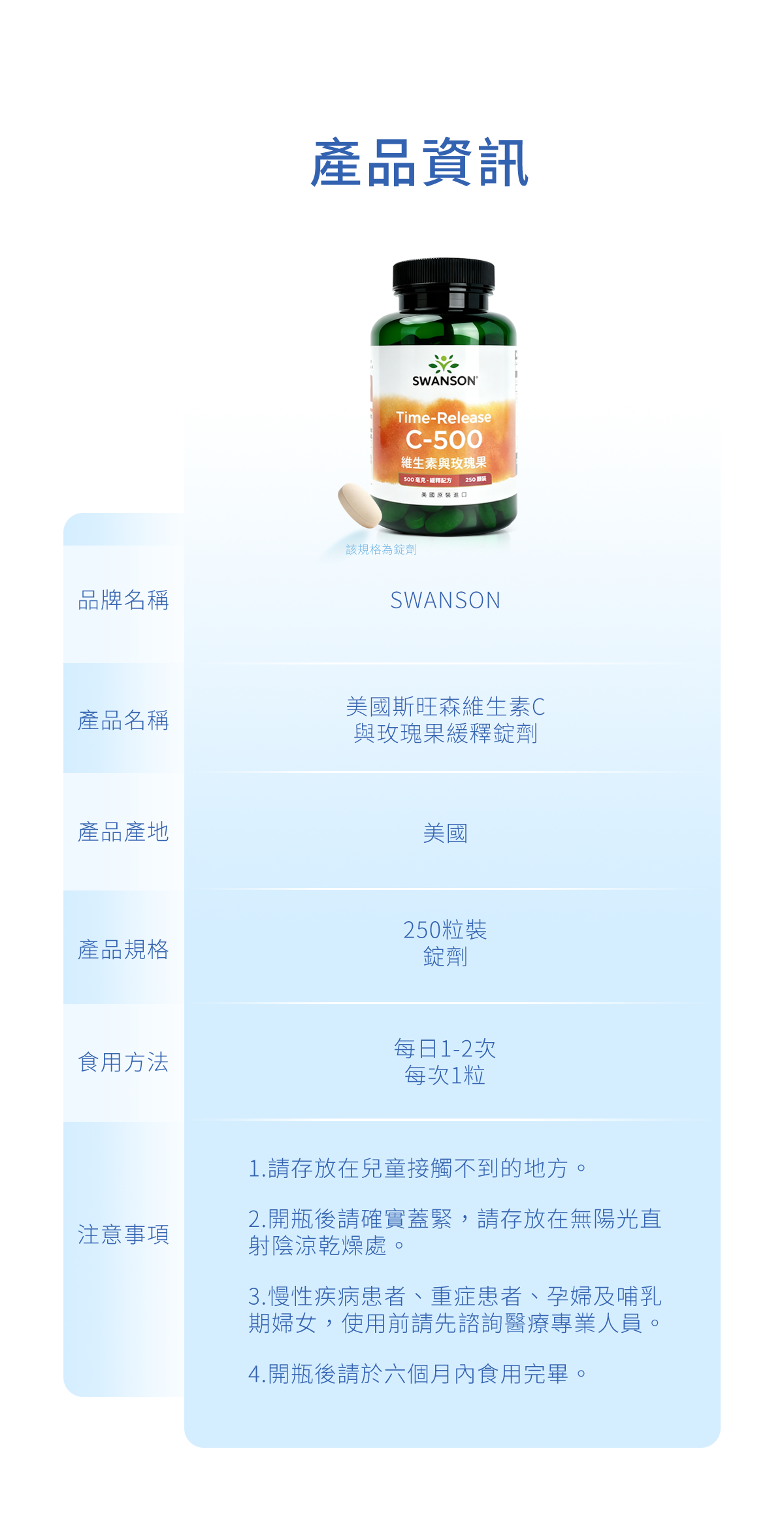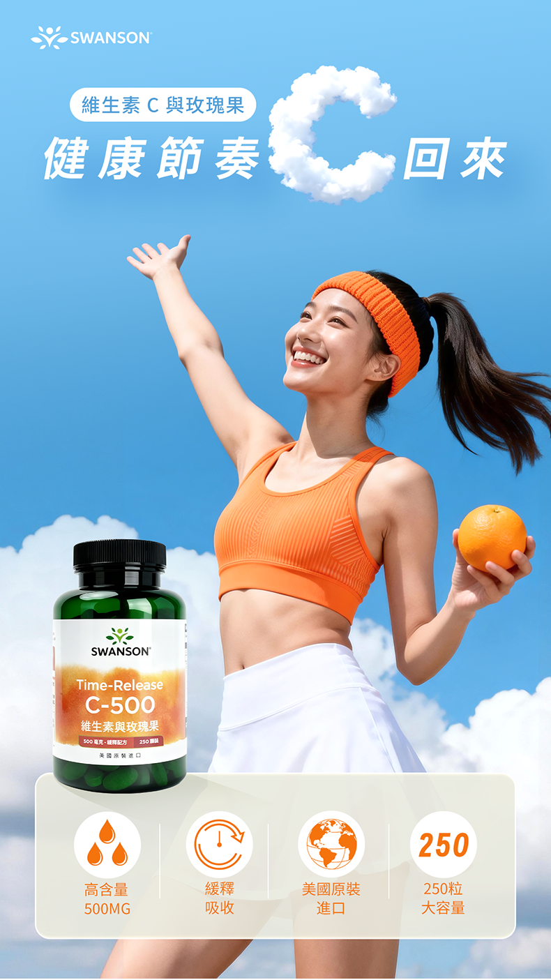 維生素C與玫瑰果 緩慢釋放 500毫克 250顆裝 錠劑