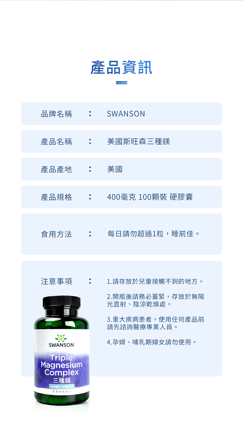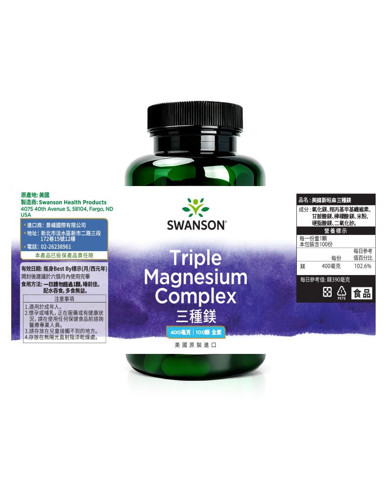 三種鎂 400毫克 100顆裝 素食硬膠囊